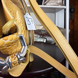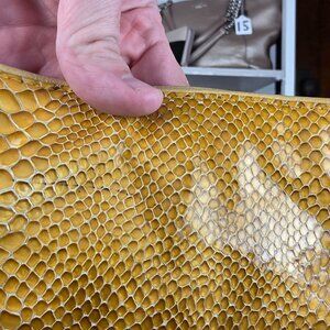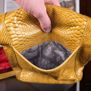 Material: Genuine leather with a vibrant yellow/gold snakeskin/python embossed texture.