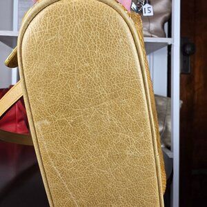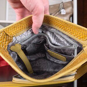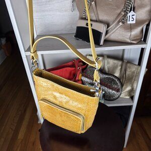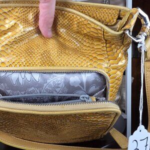 **Mustard yellow snake embossed patent leather adjustable shoulder bag ave Brighton heart charm that originally came with bag