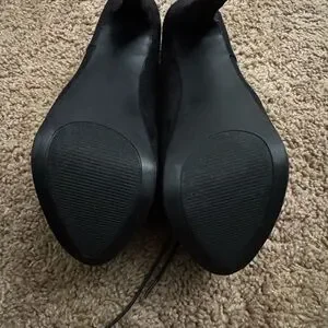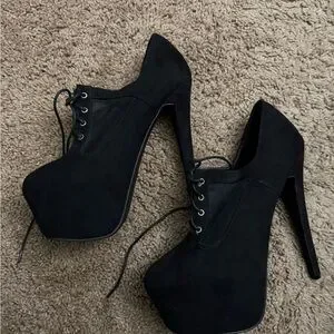 Step out in style with these elegant black platform heels. Perfect for any occasion, these shoes offer both height and comfort. A must-have addition to your wardrobe.