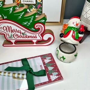 Festive Gift Set: Gold Tree Soap Ceramic Snowman Merry Christmas Sign Note Pad