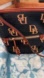 Elegant shoulder bag with iconic DB pattern. Features a sleek black base with tan accents. Ideal for everyday use.