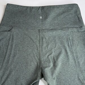 Lou & Gray heathered delphinium green Luvstretch side pocket leggings. Perfect for casual wear, yoga and workout. Cropped 7/8 length