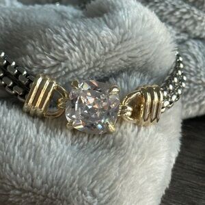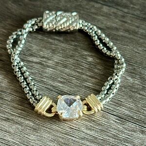 Silver tone and gold tone bracelet with clear crystal stone. Magnetic closure. Measures 7.5”. NWOT