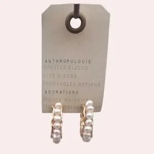 NWT Anthropologie Mini Pearl Hoop Earrings Gold