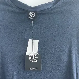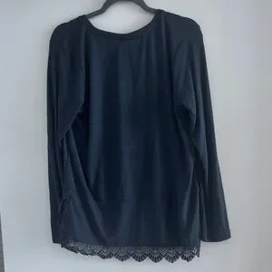 NWT. Bobeau navy Long Sleeve Top with Scalloped Lace