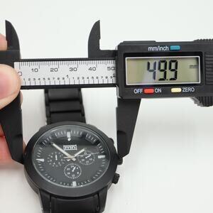MN Black Mens Watch Faux Chrono 50mm Stainless Steel Bracelet with New Battery