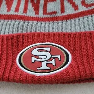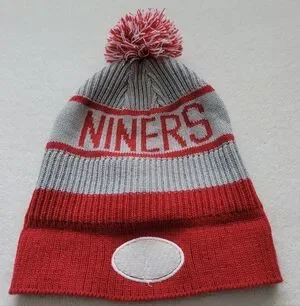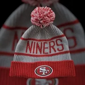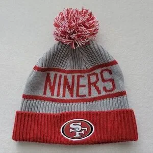 Niners Pom Beanie - San Francisco 49ers Winter Hat Red and Gray