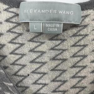 Women's Alexander Wang Wool Blend Zigzag Knit Bodycon Gray and White Sleeveless Tank Mini Dress Large. 50/50 Extrafine wool/Viscose. Excellent used condition. Fabric has lots of stretch - measurements taken flat and unstretched. 30" bust, 32.5" long.