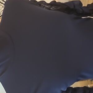 Chic navy top with ruched sleeves. Perfect for versatile styling.