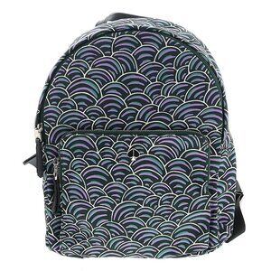 constructed of silky satin nylon in our playful party bubbles print, this large backpack features a roomy zip-around pocket at the front and an even roomier slip compartment at the back. inside, you'll find a zipper pocket and snap-tab slip pocket that holds both of your phones, while the two-way zip-around closure keeps all your important things safe. timeless details like matching leather trim and a shiny enamel spade come together to make it your go-to bag for years to come.