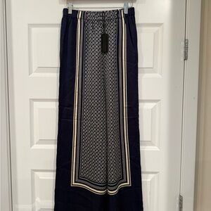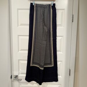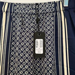 Chic wide leg pants with a navy and cream pattern. Perfect blend of style and comfort.
