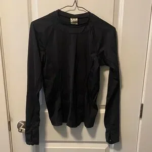 Fitted black long sleeve sun shirt featuring thumb holes. Polyamide/elastane blend.