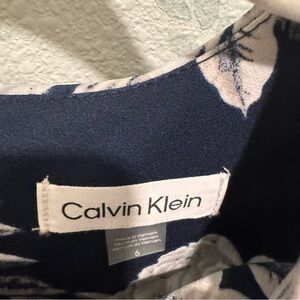 Calvin Klein Navy Blue and White Floral Midi Dress