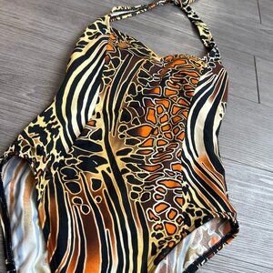 - Multi animal print vintage one piece swimsuit, likely from the 1990s