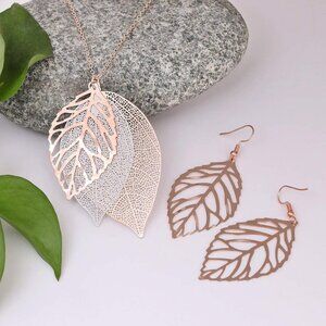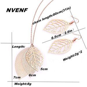 EXCELLENT MATERIAL AND MOST POPULAR SIZES please see the size description carefully if you have a size preference! EARRINGS SIZE: The high-quality eco-friendly alloy leaves measure 50mm long and 30mm wide. Tree leaves pendant drop earrings have been set on brass french earwires. These earrings measure approximately 65mm long. NECKLACES SIZE: The leaves are around 1.5 - 2.5 inches long. Due to the beautiful variations in nature, each leaf is unique so please expect a little difference f