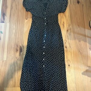 Stylish Madewell maxi dress with a black and white pattern. Features button-down front and short sleeves. Very flattering!