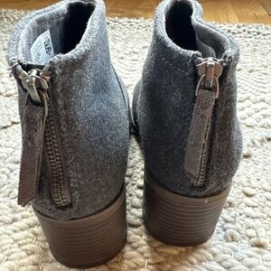 Barely worn TOMS gray suede/wool ankle heeled boot