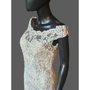 Ivory/Champagne Off Shoulder Fit and Flare Sparkle Illusion Wedding Gown