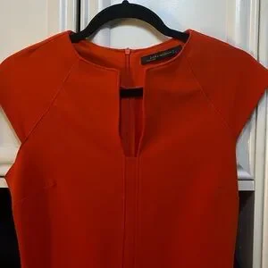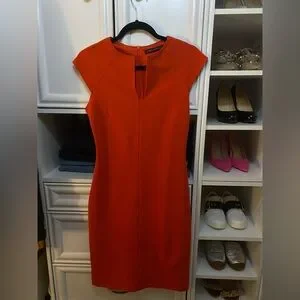Chic and stylish midi dress. Bold orange hue. Perfect for any event.