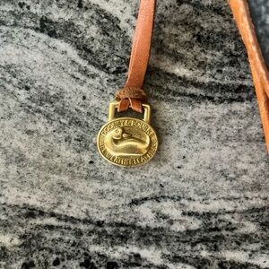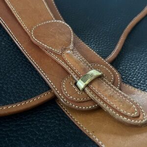 This vintage Dooney & Bourke Navy Leather Briefcase Messenger Bag is a stylish and versatile accessory for women. With a rectangular shape and a pebbled finish, this large bag features gold hardware accents and a detachable tan leather strap. Perfect for travel, formal occasions, workwear, and business, this bag also includes inner and outer pockets for added convenience. Made with high-quality leather and a blue leather lining, this messenger bag exudes timeless elegance and is a true statement piece from the renowned Dooney & Bourke brand.