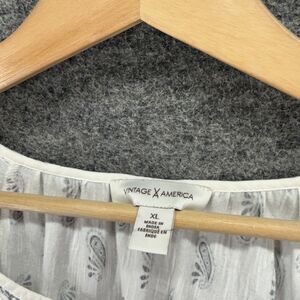 Vintage America Blouse Women XL White Paisley V-Neck Long Sleeve Cotton Casual