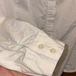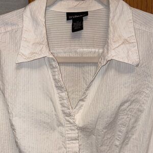 EUC Lane Bryant White Striped Blouse with silver thread accent