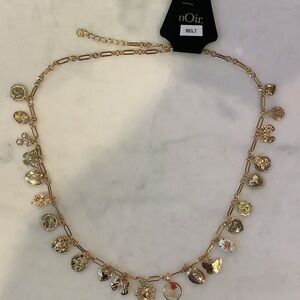 nOir Jewelry Gold Plated Waist Belt with Charms in Intricate Detail, Brand New