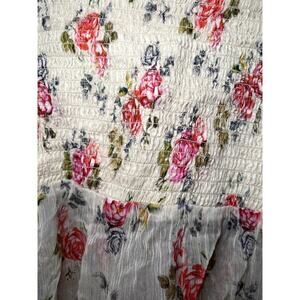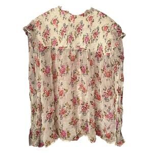 This Sundance floral button-up top is a delightful addition to any wardrobe! The cream-colored fabric is adorned with beautiful pink roses, creating a soft and feminine look.