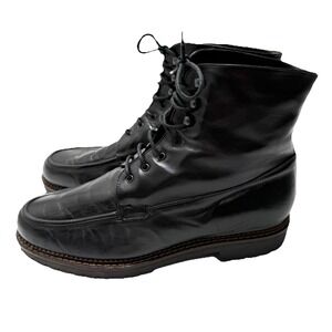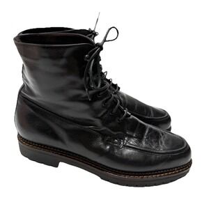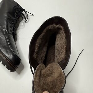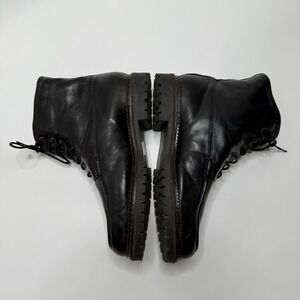 Elli Bartoli Black Leather Combat Boots Lace-Up Size 41 Italy Fur Lug Sole US 10