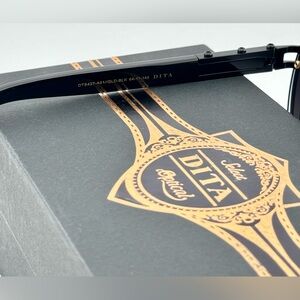Elegant DITA sunglasses featuring a bold black frame. Accented with gold details for a luxurious touch.