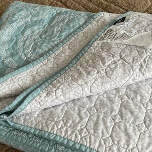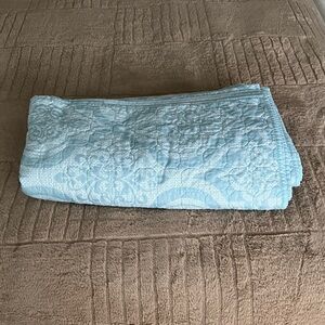 Lightly used, in great condition. Elegant blue quilt with intricate patterns. Soft and cozy for any bedroom.