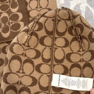 Stylish Coach scarf and hat set. Features signature pattern. Perfect for adding elegance to any outfit. New without tags