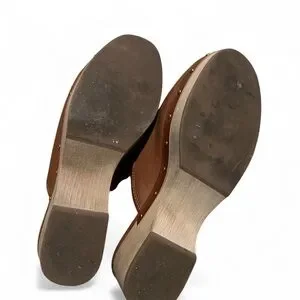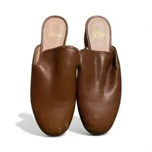 Experience timeless elegance with J. Crew's rich brown leather clogs. Ideal for versatile wear.
