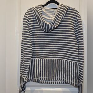J.Crew Hoodie, Nautical Stripe, Popover Sweater, Mixed Media, Coastal Chic, Navy White Stripe, Womens Medium, Knit Pullover, Striped Sweatshirt, Preppy Style, Terry Knit, J Crew Coastal
