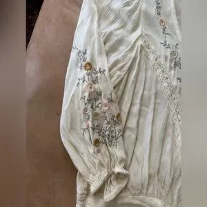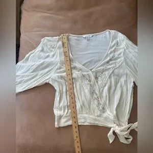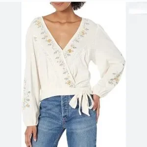 American Eagle Long Sleeve Boho Embroidered Floral Wrap Top Blouse Size Large