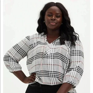 Torrid: BLACK & PEACH PLAID TWILL PEASANT BLOUSE 4X