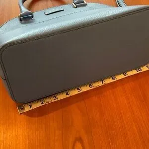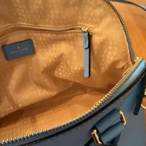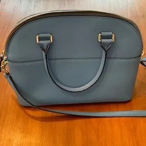 Kate Spade Grove Street Carli satchel in sky blue. Perfect for everyday elegance. Features sturdy handles and sleek design. Two small marks (see photos). Slip pocket in front, dome style, inside zipper pocket, also two slip pockets, gold tone hardware. Can be used with handles or as a crossbody. Very good used condition, no interior marks just two small marks as noted.