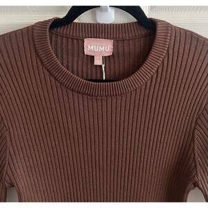 SHOW ME YOUR MUMU Fran Chocolate Brown Ribbed Faux Fur Cuffs Top Sz L NWT