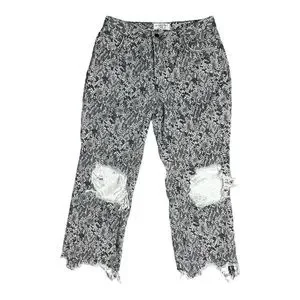 We The Free animal print cropped distressed denim pant sz 30 buttonfly j…