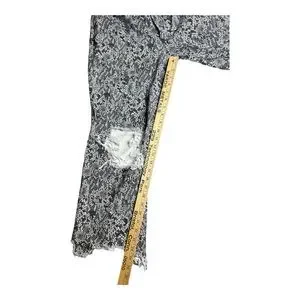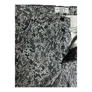 Elevate your wardrobe with these trendy animal print We The Free cropped distressed denim pants. With a buttonfly closure, these jeans are perfect for any casual occasion. The black and white animal print pattern adds a touch of edginess to your outfit. The distressed detailing on the fabric makes these jeans even more unique. The cropped style and regular fit make these jeans a must-have for any fashion-forward woman.