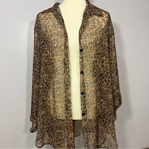 Vintage animal print sheer long line blouse swimsuit coverup leopard mobwife top