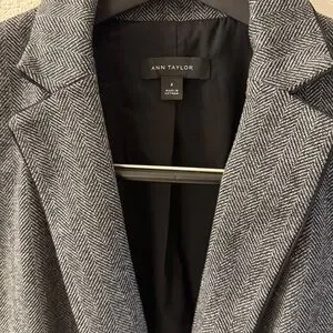 Ann Taylor Herringbone Blazer in Black and Grey