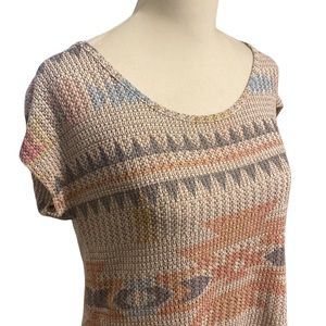 Blu Planet knit short sleeve top in excellent pre-owned condition. Aztec print in a lightweight knit material.