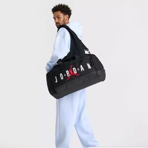 Bold Jordan duffel with iconic red logo. Perfect for gym or travel. Durable and stylish.