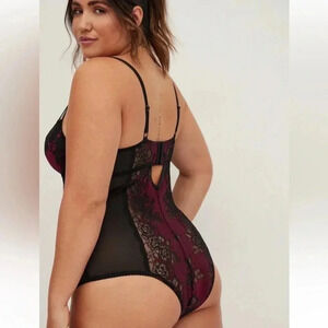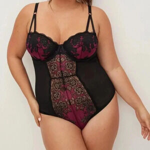 Torrid Black/Pink Lace Boudoir Underwire Bodysuit 0