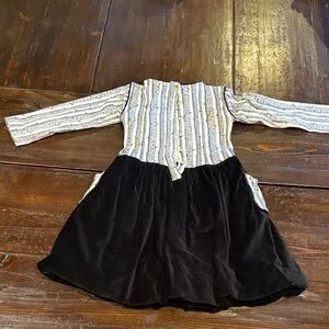Elegant dress with striped top and solid black skirt. Features convenient side pockets. Ideal for casual outings. Open to bundle offers, but not reverse orders.