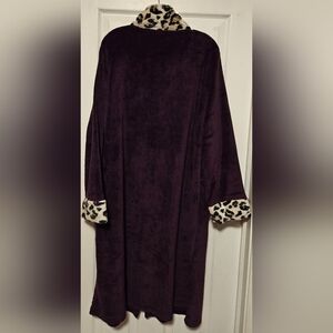 Luxurious women's robe in a rich purple with stylish leopard trim. Perfect for cozy evenings and relaxed mornings.