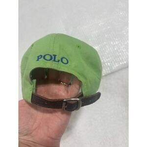 Polo Ralph Lauren Green Baseball Cap Hat Blue Pony Logo Leather Strap Adjustable