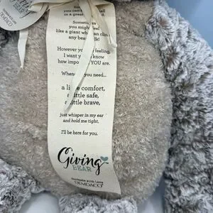 A special friend. This precious fellow comes with an endless supply of hugs, the perfect gift of comfort and love. More than just any stuffed animal, the Giving Bear is designed to be given to anyone needing a special friend.