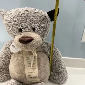 In order to maintain its hug ability, stuffed animal should be spot cleaned only. Soft touchable fabrics lend soothing comfort and love. His contrasting corduroy ear shows he is a good listener.